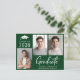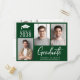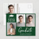 Postales de invitación a la fiesta de graduación verde de la Clase Moderna 2025 con 3 fotos, "Graduado" en un guión blanco en negrita contemporáneo y el nombre del graduado, año de clase y secundaria o universidad en tipografía blanca simple. En la parte posterior, añada una foto adicional y los detalles del fiesta.