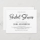 La moderna y sencilla invitación a la ducha de novia incluye un tipo de letra de cepillo escrito a mano.