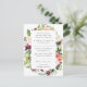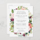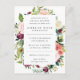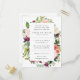 Esta moderna invitación floral a la ducha de novias incluye rosas acuáticos y peonías en tonos rosas, burdeos, marsala y marfil con follaje botánico verde exuberante. Los detalles de tu ducha de novia se muestran con una tipografía elegante sobre un overlay blanco.