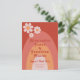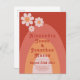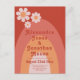 Audaz y moderno groovy retro invitación a la boda de los colores vintage de los años 70. Patrón de margarita minimalista retro de Guay con diseño de arco iris en albaricoque naranja de durazno de terracota. Esta divertida invitación a una boda hipster es fácil de personalizar usando las simples plantillas. Ideal para marcar el tono de una primavera de verano o de un boda de otoño. Pintura original de la artista Catherine Sweetman