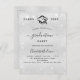 Una moderna, elegante y minimalista invitación para graduar a niños y chicas. Fondo de aspecto metálico falso plateado decorado con polvo falso purpurina. Personalice y agregue un nombre, año y detalles. Letras de color negro.