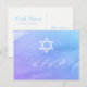 Postales modernas de color púrpura y azul verde azulado Bat Mitzvah RSVP. Este diseño presenta un diseño acuático moderno con una estrella de David. Personaliza fácilmente tu evento especial.