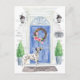 Anuncie su nueva dirección con nuestra elegante invitación con una puerta principal dálmata, azul, estera de bienvenida, pizarra de anuncios, topiarios y una corona floral sobre un fondo de ladrillo gris.