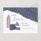 Una acogedora tarjeta postal de invitación con bonitos vibraciones, con un paisaje de pueblo de Navidades nevados. "Un nuevo hogar para las vacaciones" aparece con el nombre de su familia en la parte delantera. En la parte posterior, personaliza con tu nueva dirección y firma familiar.
