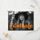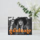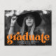 Audaces postales de invitación a la fiesta de graduación con la foto horizontal del graduado con "graduados" en negrita con letras naranjas. Personalice las invitaciones de la fiesta de graduación con fotos agregando el nombre del graduado, el año de graduación y la escuela. La fiesta de graduación de la tarjeta postal invita a revertir para mostrar su dirección de retorno y los detalles del fiesta.