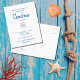 Postal de la invitación de los navidades Beach Party, con un diseño de tipografía azul y un dólar de arena tropical. Con grabado de personalizable, puede agregar su propia información. Una forma festiva de planificar su celebración de vacaciones de destino.