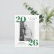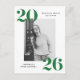 Invite a los huéspedes a celebrar el grado con nuestras modernas tarjetas postales de invitación para la fiesta de graduación 2025. Las elegantes postales de la fiesta de graduación muestran la foto del graduado enmarcada en blanco con 2025 en negritas letras verdes en las esquinas superior izquierda y inferior derecha. Personalice la parte delantera de la fiesta de graduación con fotos agregando el nombre del graduado y el nombre de la escuela. La postal se revierte para mostrar la dirección de retorno y los detalles de la fiesta de graduación.