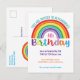 Niños con Chicas coloridos de la fiesta de cumpleaños arcoiris invitan a postales. ¡Te invitan a una colorida fiesta de cumpleaños! Personalice esta invitación arcoiris con detalles de nombre, edad y fiesta. Perfecto para un cumpleaños con temática de arcoiris para una niña pequeña. La parte trasera de la invitación presenta un hermoso patrón de arcos de cumpleaños. Rojo, naranja, amarillo, verde, azul, violeta y rosa sobre un fondo blanco, hacen que sea una invitación al arco iris divertida y elegante. Añadir la dirección de retorno en la parte posterior. Coordine con nuestros otros suministros de cumpleaños de arco iris. www.SamAnnDesigns.com
