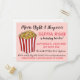 El diseño de la invitación presenta una ilustración original a mano de una caja de palomitas de maíz a rayas rojas y blancas. Ideal para una noche de cine, pijamada o fiesta de pijamas, fiesta de cumpleaños, feria o celebración. Solo personalice con la información de su evento.