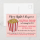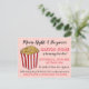 El diseño de la invitación presenta una ilustración original a mano de una caja de palomitas de maíz a rayas rojas y blancas. Ideal para una noche de cine, fiesta de pijamas o fiesta de dormida, fiesta de cumpleaños, carnaval u otra celebración. Simplemente personalice con la información de su evento.