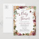 Se trata de una invitación rústica y bohemia a la ducha de bebé en una conveniente postal, con un diseño floral y botánico de acuarela bohemio de color otoñal. La paleta de colores presenta colores otoñales como el burdeos, el naranja quemado, la terracota, el verde profundo, la baya y el oro. Esto sería perfecto para una ducha de bebé de temática rústica o de otoño y también se correspondería perfectamente con los demás productos de la colección para una hermosa y elegante ducha de bebé de otoño. Personalizar fácilmente todo el texto según sea necesario utilizando la plantilla de texto proporcionada. Póngase en contacto con el diseñador para cualquier consulta relacionada con este diseño o para cualquier producto que no esté disponible.