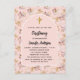 Marco de arco sobre un patrón de pampas hierba y flores rosadas y una cruz dorada. Personalice y agregue un nombre y detalles.