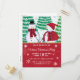 Invite a sus invitados a su fiesta virtual de vacaciones con estilo con esta invitación de fiesta de Navidades artísticos. Este diseño cuenta con una pareja de hombres de nieve vestidos con capa y bufanda de argyle rojo y negro. En el fondo hay pinos nevados y copos de nieve. Debajo en rojo está la tipografía blanca con todos los detalles de tu fiesta para que puedas personalizar. La parte trasera de la tarjeta es roja con copos de nieve blancos. Diseñado por la artista ©Susan Coffey.