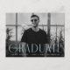 Una simple fiesta de graduación invita a una postal con la foto horizontal del graduado con "Graduado" exhibida con letras de diseño de arte moderno y azul claro. Personalice la invitación de la parte delantera de la fiesta de graduación con fotos agregando el nombre del graduado, la escuela y el año de postgrado. La postal se revierte para mostrar la dirección de retorno y los detalles de la fiesta de graduación. ¡La invitación con postales es perfecta tanto para graduados de secundaria como universitarios!