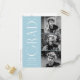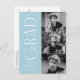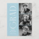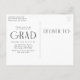 Elegantes postales de invitación a la fiesta de graduación con las tres fotos del graduado ubicadas a la derecha del diseño en un diseño vertical. El "Grad" se exhibe con letras blancas y modernas, con un fondo azul cielo. Personalice la invitación de la moderna fiesta de graduación con fotos agregando el nombre del graduado, el año de graduación y el nombre de la escuela. La postal se revierte para mostrar la dirección de retorno y los detalles de la fiesta de graduación. ¡Perfecto tanto para graduados de secundaria como universitarios!