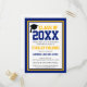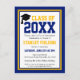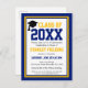 Esta tarjeta postal de la Marina y el Partido de la Graduación de Oro es una excelente manera de celebrar el bachillerato o el graduado universitario. Personalice esto con el nombre, la escuela, el año y los detalles del fiesta. Esta invitación presenta tipografía audaz en colores de marina y escuela de oro con un borde marina y dorado.