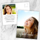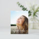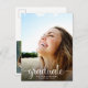 Una moderna postal de invitación a la fiesta de graduación con la foto del graduado con "graduados" en un moderno guión en blanco con toques y su nombre y año de clase con simple letras en blanco. En la parte posterior, añada una foto adicional y los detalles de su fiesta.