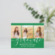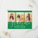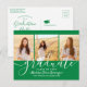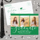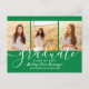 Anunciar una graduación de secundaria o universitaria e invitar a familiares y amigos a celebrar con postales de invitación del colage de fotos del personalizado 3. Todas las imágenes y la redacción son simples de personalizar y los colores son fáciles de cambiar con la herramienta de diseño de Zazzle. Esta plantilla se configura como una tarjeta de invitación combinada y una invitación de fiesta que se pueden personalizar con cualquier detalle de su elección, como los nombres de los padres, los honores especiales, el título de grado, la cita inspiradora favorita, los planes futuros de los graduados o la nueva dirección. El diseño en blanco y verde incluye un gorro de tabla de mortero, caligrafía moderna de escritura a la moda, tipografía minimalista elegante y tres fotos favoritas, como imágenes senior o de la ceremonia de inicio. Esta tarjeta de graduación es una manera elegante de anunciar una celebración especial del día. ¡Felicitaciones al graduado!