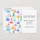 Guarde la postal de fecha con un patrón divertido y colorido. Los investigadores científicos vivirán con vasos y frascos de diferentes formas y tamaños en colores alegres y brillantes.