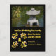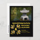 Colorida escuela de personalizados koi dorados nadando alrededor de un monograma ubicado en la esquina inferior izquierda. Encima del pescado hay una fotografía de una lámpara de piedra japonesa colocada en un estanque koi; manténgala o sustitúyala con tu foto, selfie o imagen. Entre la foto y los peces hay un campo de texto personalizado que dice como "Fiesta de té de cumpleaños de Annie", repropósito para satisfacer sus necesidades. En la parte inferior izquierda están los campos de texto para guardar la fecha y la ubicación del evento.