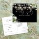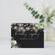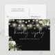 Una elegante tarjeta RSVP de petición de canción con vegetación floral, luces de cuerda y tipografía de moda en un fondo blanco y negro. El reverso cuenta con tus detalles y una divertida petición de canciones de invitados. Diseñado por Thisisnotme©