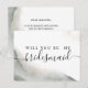 Pide a tus mejores amigas que estén a tu lado con esta elegante tarjeta de "¿Quieres ser mi dama de honor?", que presenta pinceladas suaves de acuarela verde y delicados acentos de salpicaduras doradas. Perfecta para propuestas de boda, esta tarjeta añade un toque de sofisticación y emoción a tu petición especial. Impresa en papel mate premium y en blanco por dentro para tu mensaje sincero. Ideal para temas de boda modernos, minimalistas o inspirados en la naturaleza.