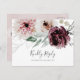 Esta floral canción romántica solicitud postal RSVP es perfecta para una boda elegante. El moderno diseño rústico de boho cuenta con románticas flores acuáticas en tonos suaves de burdeos, malva, rosa y crema blanca con hojas verdes. ¡Elabore su lista de invitados bodas y su lista de canciones de la pista de baile al mismo tiempo! Esta postal de respuesta boda le pregunta convenientemente a los invitados si podrán asistir a su boda, y también qué canción les hará bailar.
