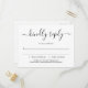 Utilice un entorno maravillosamente sencillo para las respuestas de sus huéspedes a su boda. Ahorre dinero en franqueo optando por el conveniente formato de postal.
