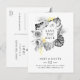 Esta moderna tarjeta postal de "salvemos la fecha" tropical es perfecta para su boda bohemio de verano en un destino exótico. Diseñada con un clásico y elegante floral amarillo que destaca de la vegetación gris costera, incluyendo hojas de palma y helechos. Con todas estas coloridas flores de acuarela y hojas grises, seguro que tendrá el ambiente bohemio de playa que está buscando.