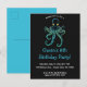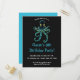 Esta tarjeta presenta un pulpo azul en la parte superior con los detalles del evento debajo. El texto en la parte frontal es editable, así que cambia los detalles, así como la ubicación, el estilo, el tamaño y el color de la fuente y hazlo tuyo. El color en la parte posterior también se puede cambiar.