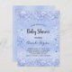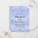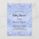 Para una ducha de bebé, celebrando a un bebé. Un fondo de aspecto metálico falso azul claro. Decorado con un falso purpurina. Plantillas para el nombre de la madre y detalles del fiesta. El nombre y el texto: Baby Shower se escriben con un guión de estilo con letras a mano Atrás: fondo azul falso metálico, diseño de postal. Sugerencia: Si no desea que se vea como una postal, haga clic en personalizar, vaya a la parte posterior y quite el separador y el sello postal.