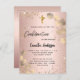Un fondo dorado rosa y ruidoso decorado con eucaliptos dorados y purpurinas de imitación de oro, chispas. Personalización y nombre y detalles de la ceremonia. Letras de color negro.