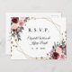 Tarjeta RSVP de Boda Geométrica Purpurina de Oro Borgoña Floral