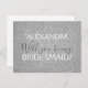 Moderna Purpurina de imitación plateada y elegante esparkle ¿Serás mi dama de honor? Postal con nombre personalizado.