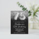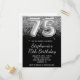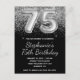 Postal De Invitación Purpurina Sparkly Silver Balón negro 75º cumpleaño