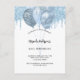Un fondo blanco. Decorada con tonalidades purpurinas de color azul claro, pinturas de goteo y globos. Personalizar y un nombre y detalles del fiesta.