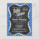 Te encantará este diseño de pizarra de timbre bonito, elegante y vintage con diseño de patrón de quatrefoil azul cobalto. Lo invitamos a nuestra tienda, Baby Shower Boutique, para ver este diseño retro de pizarra en muchos más productos de personalizable, incluyendo las invitaciones retro Baby Shower y los regalos para bebés y chicas! Gracias!