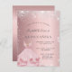Una invitación moderna, elegante y glamurosa para una fiesta de 15 años en Quinceañera. Un fondo de aspecto metálico rosado falso con un polvo falso purpurina de plata y un batuche de oro rosa. El nombre está escrito con una escritura de estilo con letras a mano moderna. Personalice y agregue los detalles de su fiesta. Sugerencia: Si no desea que se vea como una postal, haga clic en personalizar, vaya a la parte posterior y quite el separador y el sello postal.