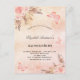 Un fondo de color oro rosa, color rosa oscuro, fino y de aspecto metálico. Decorada con rosa de oro y flores rosadas, rosas, pampas y mariposas. Personalice y agregue un nombre y detalles del fiesta. Sugerencia: Si no desea que se vea como una postal, haga clic en personalizar, vaya a la parte posterior y quite el separador y el sello postal.