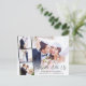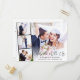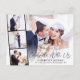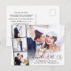 Tarjeta postal de invitación a boda o anuncio de matrimonio privado y recepción elegante con la foto de su día de boda superpuesta con una tira de tres fotos cuadradas más pequeñas y "Celebre Con Nosotros" en una escritura moderna y elegante. Agregue sus nombres, fecha de la boda y ubicación. En el reverso, personalice su anuncio de matrimonio e invitación a la recepción y agregue sus nombres en una escritura similar a una firma.