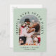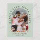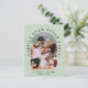 Tarjeta de invitación para una elopement o anuncio de boda privada y recepción de boda en verde salvia moderno. La parte delantera presenta la foto de su día de boda en un marco de arco y "Fiesta Feliz para Siempre" en tipografía elegante. Agregue sus primeros nombres y fecha de boda. En el reverso, personalice su mensaje y agregue sus nombres en una escritura similar a una firma.