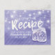 Plantillas de tarjetas de recetas de duchas de novias - Letras elegantes y frascos de mason de parejas de vintage y luces de cadena sobre fondo violeta morado de color. Un diseño perfecto para tu gran día. ¡Todo el estilo de texto, colores, tamaños se pueden modificar para adaptarlo a sus necesidades!