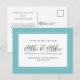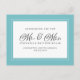 El diseño de la tarjeta de anuncio de recién casados en azul acuático verde y blanco presenta un hermoso borde chic en acuático que incluye un elegante borde blanco pequeño. La caligrafía y el guión son de color gris carbón sobre un fondo blanco. Personalice con su nombre y fecha de boda. Una plantilla moderna para la fecha y el año complementa el diseño único de caligrafía. La parte trasera de la tarjeta proporciona una plantilla para su mensaje y espacio para sus firmas manuscritas para agregar ese toque personal.