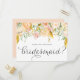 ¿Serás mi dama de honor? Pídele a sus amigos y familiares que sean parte de su boda con esta tarjeta de presentación de la fiesta nupcial. Cuenta con una acuarela de flores de melocotón floridas y hojas de Relieve metalizado de oro falsas. Personalice agregando nombres y mensajes. Esta tarjeta de proposición de la dama de honor floral de melocotón es perfecta para bodas de primavera e invierno.