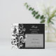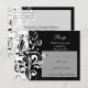 Colección de conjuntos a juego de alto contraste en blanco y negro con estilo y moda. Muestra tu estilo con este esquema de diseño atrevido y llamativo. Formas suaves y redondeadas que se curvan y se arremolinan en blanco sobre un fondo negro. ¡Este artículo está disponible como una colección completa de boda que incluye invitaciones, favores y más!