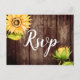Postal De Invitación Respuesta de boda de girasol soleado rústico con e