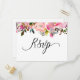 Tarjeta postal de respuesta personalizable con ilustraciones de acuarela y patrón de follaje y peonías rosadas. Esta tarjeta postal de respuesta floral es perfecta para bodas de primavera y de jardín. Están disponibles artículos que combinan.