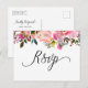 Tarjeta postal de respuesta personalizable con ilustraciones en acuarela y patrón de follaje y peonías rosadas. Esta tarjeta postal de respuesta floral es perfecta para bodas de primavera y de jardín. Están disponibles artículos que coinciden.