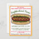 Las invitaciones presentan una ilustración original a marcador de un delicioso hot dog en un pan con mostaza y salsa de pepino. Ideal para una comida al aire libre, picnic o reunión familiar. Solo personalice con la información de su evento.