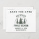 Envíe fácilmente la información SAVE THE FATE para su reunión familiar con estas postales diseñadas con un diseño rústico de árboles de bosque de reunion familiar en un color verde sabio. También se dispone de suministros de fiesta y artículos de novedad para coordinar la reunión. ASISTENCIA: Para obtener ayuda con la modificación o personalización del diseño, el cambio de color, el redimensionamiento, la transferencia del diseño a otro producto o desea coordinar elementos, póngase en contacto con el diseñador ANTES DE PEDIRLO a través de Zazzle Chat o makeitaboutyoustore@gmail.com.